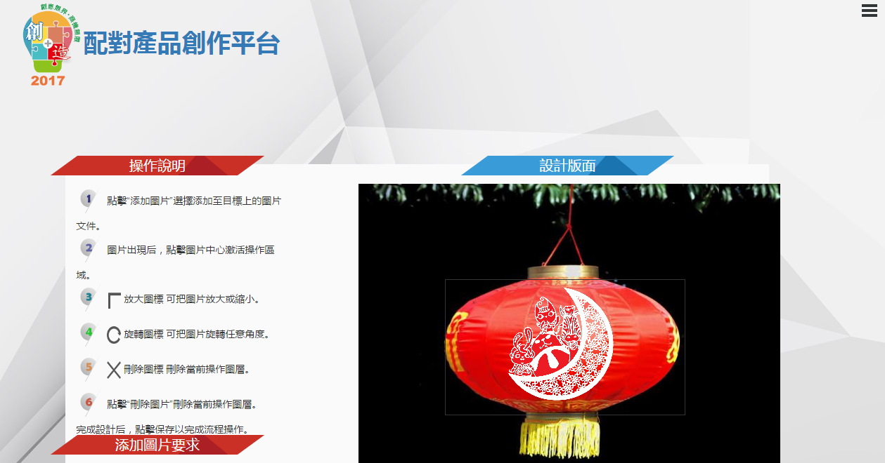 Crossover Products Creation Platform 功能介紹 http://cpcp.crossmatchingshowcase.com 作為“跨產業【創】+【造】配對計劃”第一步:“配對產品創作平台”(cpcp)提供了一個共建的環境。 一, 供應商自由投放產品于CPCP。 二, 設計師就海量的供應商產品進行選擇性創作并顯于平台,而其中,我們提供了一套免費的線上設計工具,供設計師們使用。 三, 需求者在cpcp上,尋找適合的設計圖樣,加以自身的設計,結合出最適當的商品。 供應商: 供應商自由投放商品 供應商透過電郵:iea@dt-asia.com或電話:3696 6934聯絡平台管理員申請成為供應商 由網站管理人員負責創建供應商賬號。(現階段不收任何費用) 供應商則可通過賬號登錄到CPCP後台,新增及編輯其產品供給設計師們設計。(不需支付設計費用) 如有需求者相中其設計產品則會自行聯繫到供應商及設計師。與其進行業務聯繫。 設計師: 設計師與供應商自由配對 設計師可以通過CPCP平台註冊。 經批核后,供應商可通過賬號登錄到CPCP後台,在眾多供應商產品中,選擇目標并進行設計(平台提供了一個設計功能)。 設計成功后,會在CPCP的設計品中展示出來,同時也會在設計師所屬專頁中展示。 如有需求者相中其設計產品則會自行聯繫到供應商及設計師。與其進行業務聯繫。 需求者: 需求者對眾多不同產品進行挑選 需求者無需註冊即可對設計好的商品進行二次設計加工。 加工完成后,可發送記錄到目標郵箱。 郵箱中有該設計品圖樣,供應商聯繫資料和設計師聯繫資料。 方便需求壓縮中間環節,直接面對供應商。